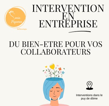 En tant que réflexologue et énergéticienne certifiée, j'interviens auprès des entreprises de Clermont-Ferrand et ses environs pour promouvoir le bien-être au travail et prévenir le burn-out.